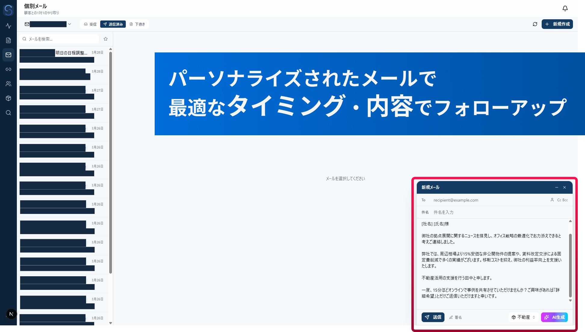 例えば、 Sonogo(ソノゴ) のような最新ツールでは、AIが商材情報を元にフォローメールを自動生成するだけでなく、そのメールが開封されたか、URLがクリックされたかをリアルタイムで追跡できます。これにより、「送って終わり」ではない、データに基づいた確実な追客が可能になります。