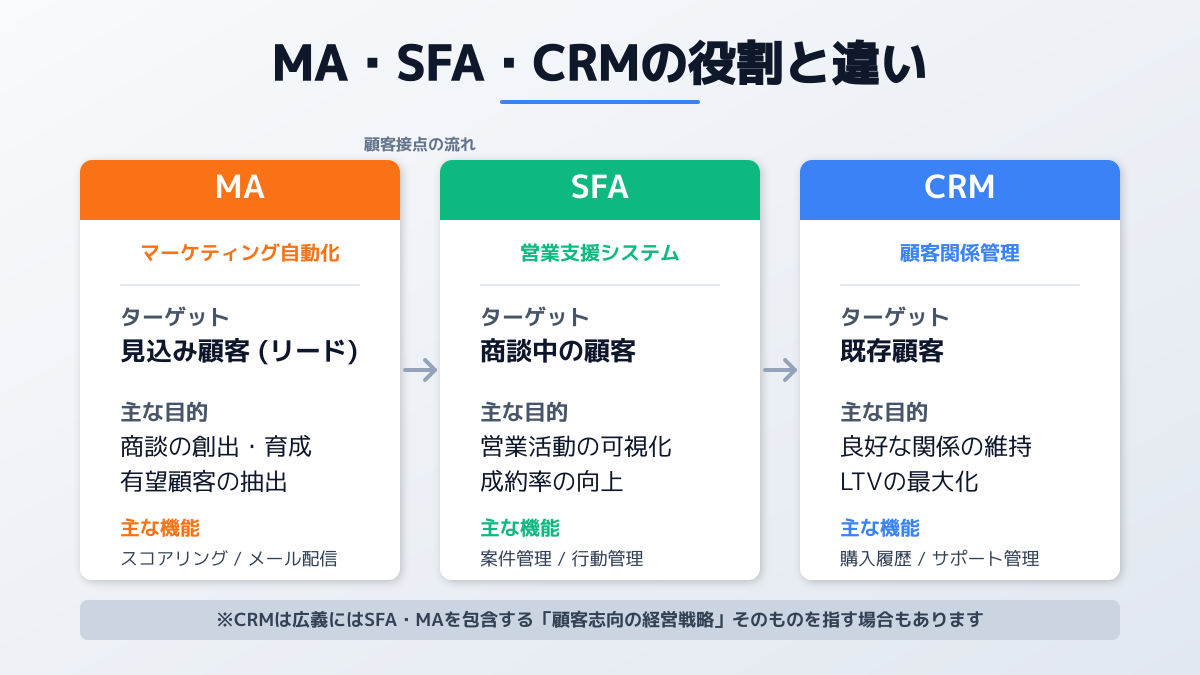 CRM・SFA・MAの違いと適切なシステム領域