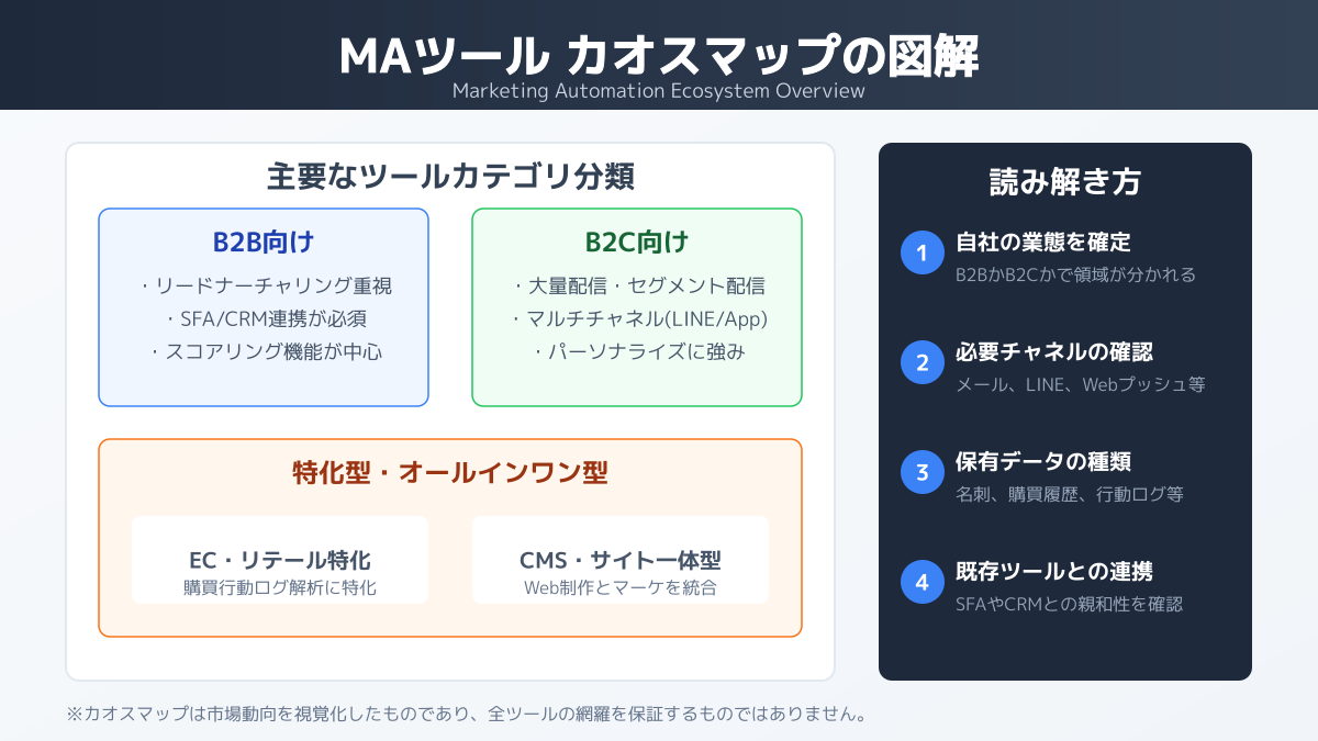 【2026年版】MAツール一覧とカオスマップ|BtoB向け比較と失敗しない選び方