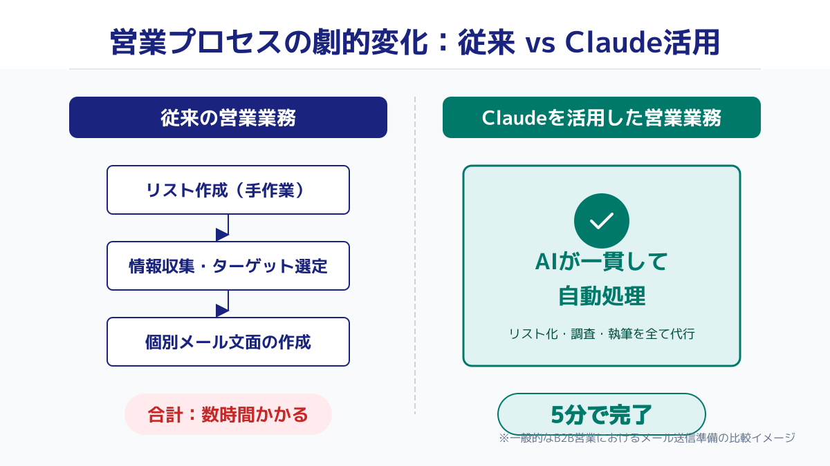 本記事では、BtoB営業ツールの新常識とも言えるClaudeを最大限に活用し、営業リスト作成からメール送信までのプロセスを劇的に効率化する手順を、ステップバイステップでご紹介します。