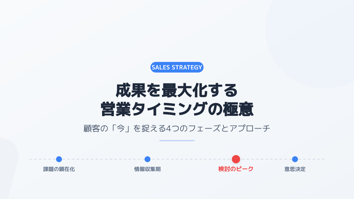現場で活用する際は、押し売り感を出さないことが重要です。あくまで顧客の現状に合っているかを確認する伴走型のスタンスを崩してはいけません。タイミングを見誤ると警戒されるため、適切なフォローアップが不可欠です。商談後のアプローチについては、商談化率を劇的に上げる!資料送付後の電話のベストタイミングと営業フォローの極意 も参考にしてください。